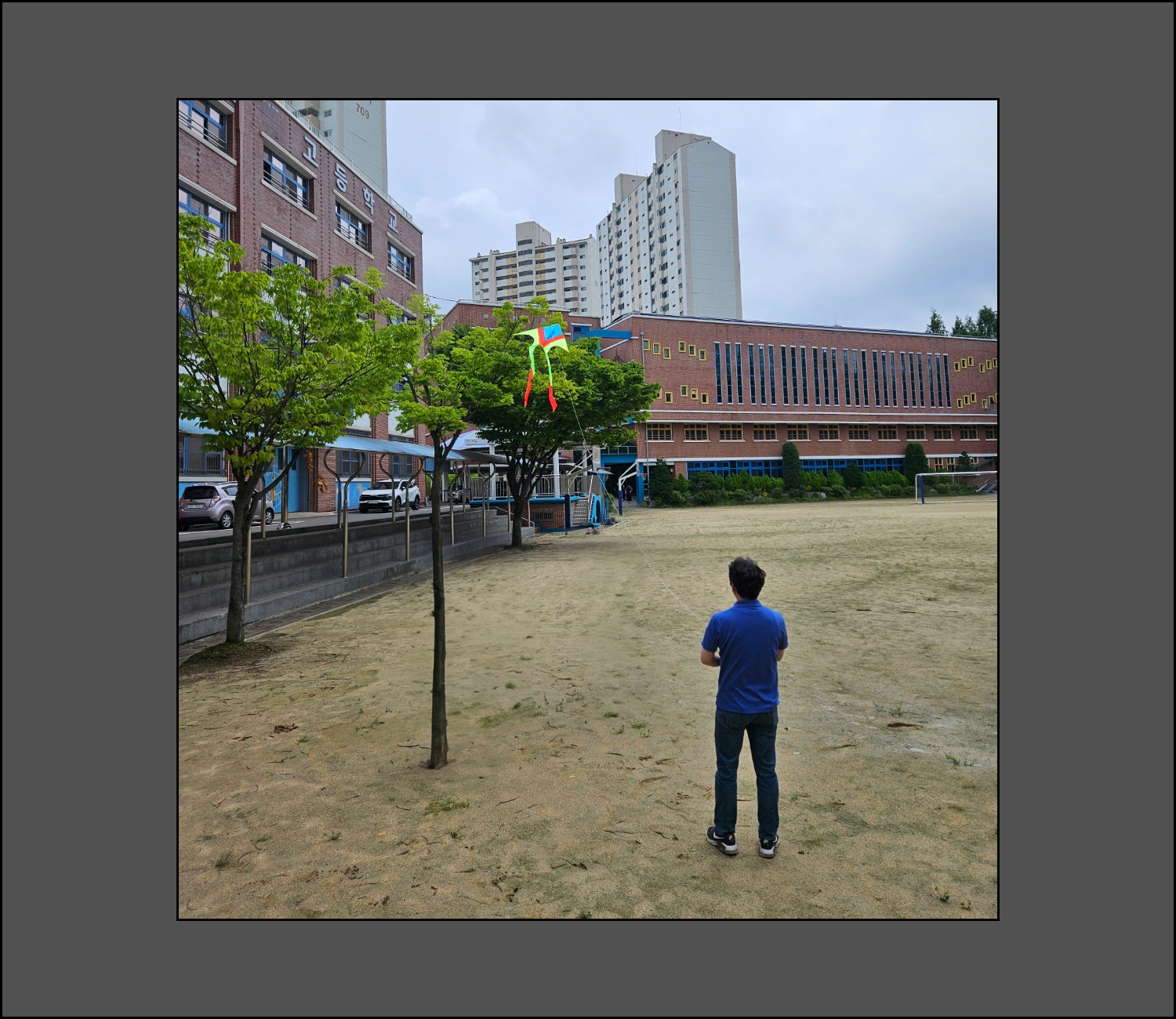 점심 먹고 교정을 한바퀴 도는데 몇몇 학생들이 어울려 연을 만지고 있었다.